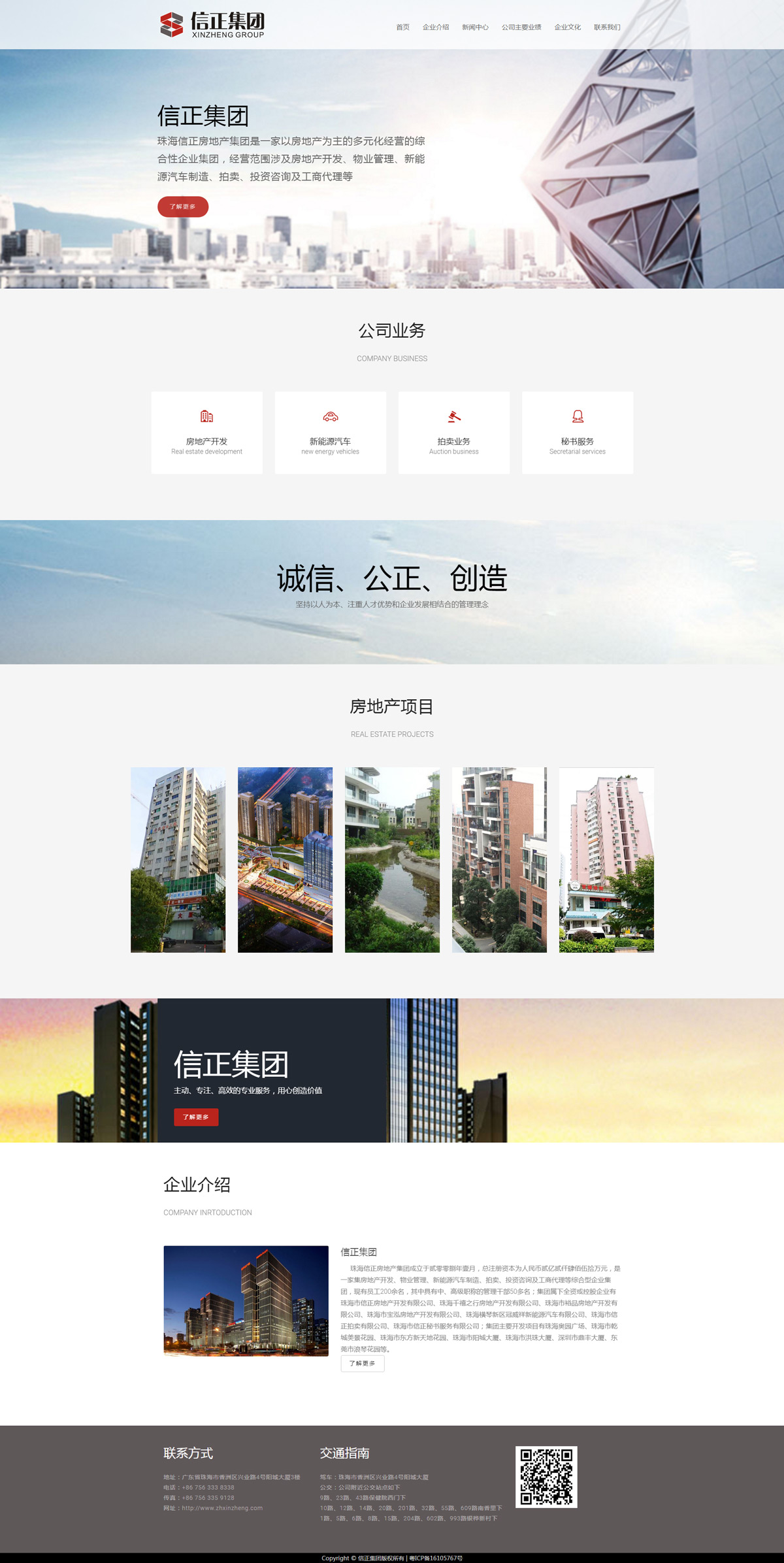 珠海信正房地產(chǎn)集團成立于貳零零捌年壹月,總注冊資本為人民幣貳億貳仟肆佰伍拾萬元,是一家集房地產(chǎn)開發(fā)、物業(yè)管理、新能源汽車制造、拍賣、投資咨詢及工商代理等綜合型企業(yè)集團,現(xiàn)有員工200余名,其中具有中、高級職稱的管理干部50多名;集團屬下全資或控股企業(yè)有珠海市信正房地產(chǎn)開發(fā)有限公司、珠海千禧之行房地產(chǎn)開發(fā)有限公司、珠海市裕品房地產(chǎn)開發(fā)有限公司、珠海市寶泓房地產(chǎn)開發(fā)有限公司、珠海橫琴新區(qū)冠威祥新能源汽車有限公司、珠海市信正拍賣有限公司、珠海市信正秘書服務(wù)有限公司;集團主要開發(fā)項目有珠海奧園廣場、珠海市乾城美景花園、珠海市東方新天地花園、珠海市陽城大廈、珠海市洪珠大廈、深圳市鼎豐大廈、東莞市浪琴花園等。